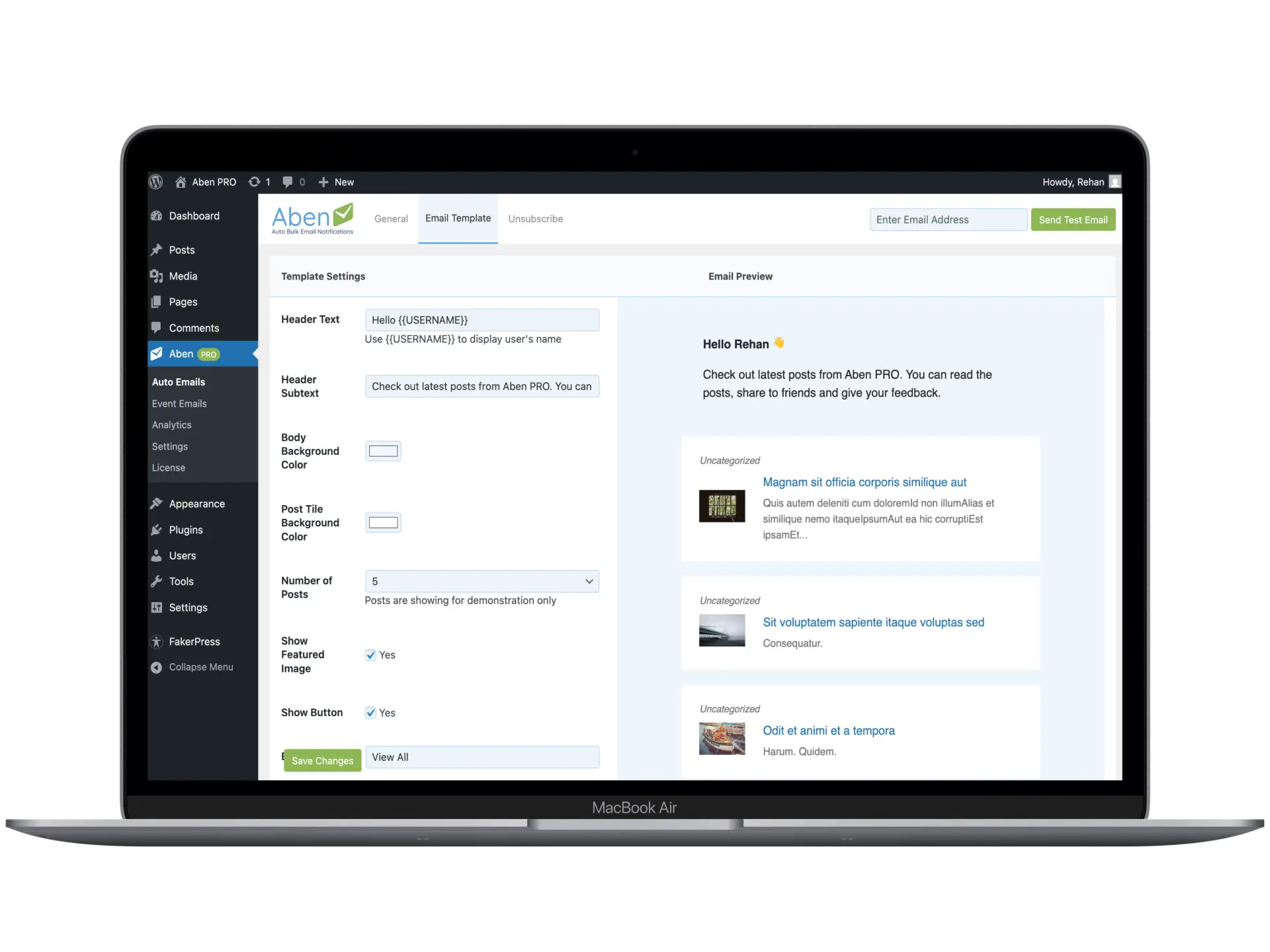 Customize every email to perfection with dynamic placeholders, flexible post settings, and stunning visuals.Use dynamic placeholders like {{USERNAME}} to address users by name for a personal touch. Decide how many posts to include in each email.